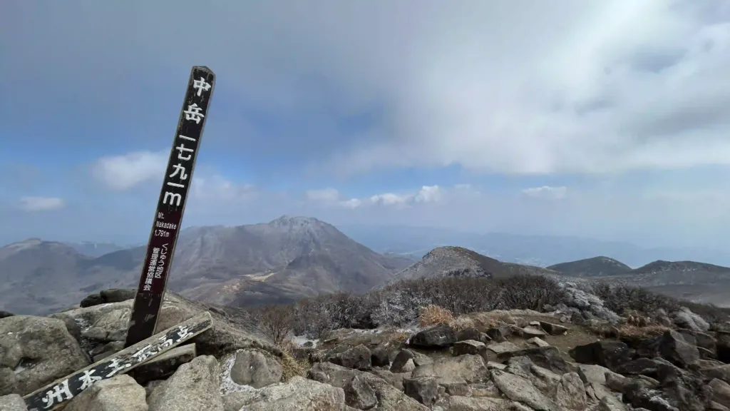 九州本土最高点です。雪ないのに寒い!