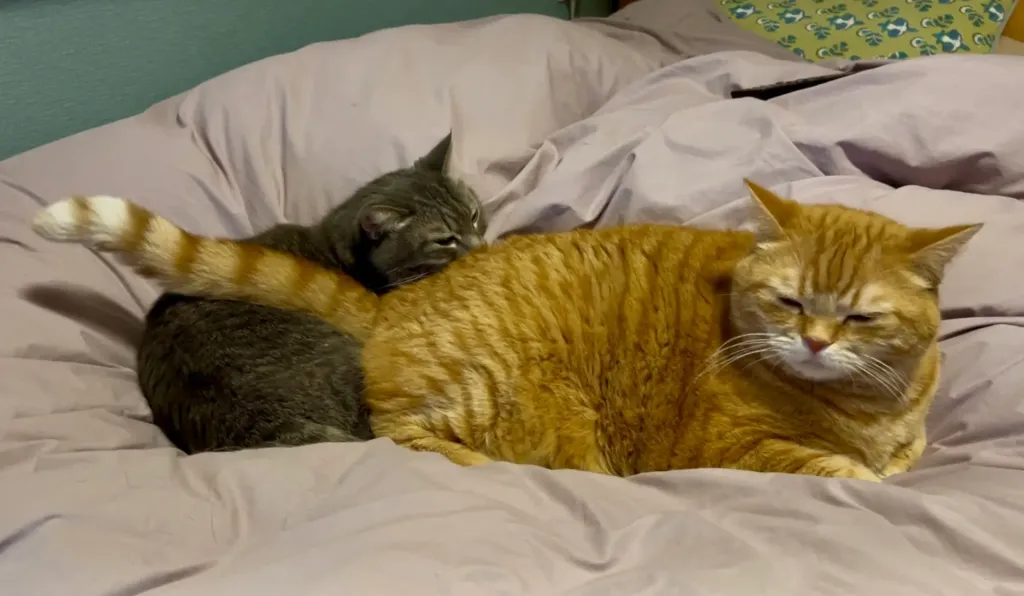 あんこときなこが再び一緒に並んで寝ている姿が見られ、日常の幸せを感じています。
