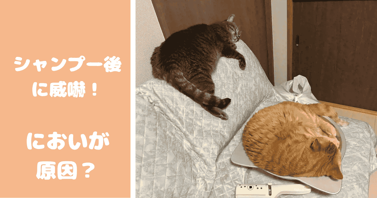 - 両方の猫を同じ日にシャンプーしてにおいをそろえる